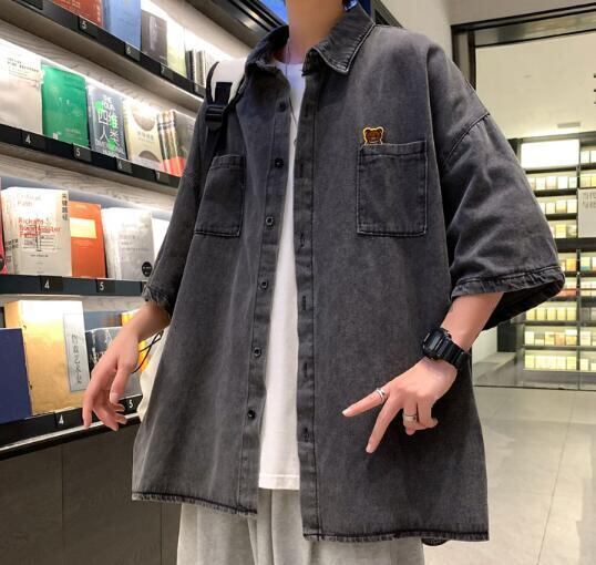 早い者勝ち メンズ トップス シャツ デニム 半袖 夏 シンプル レトロ